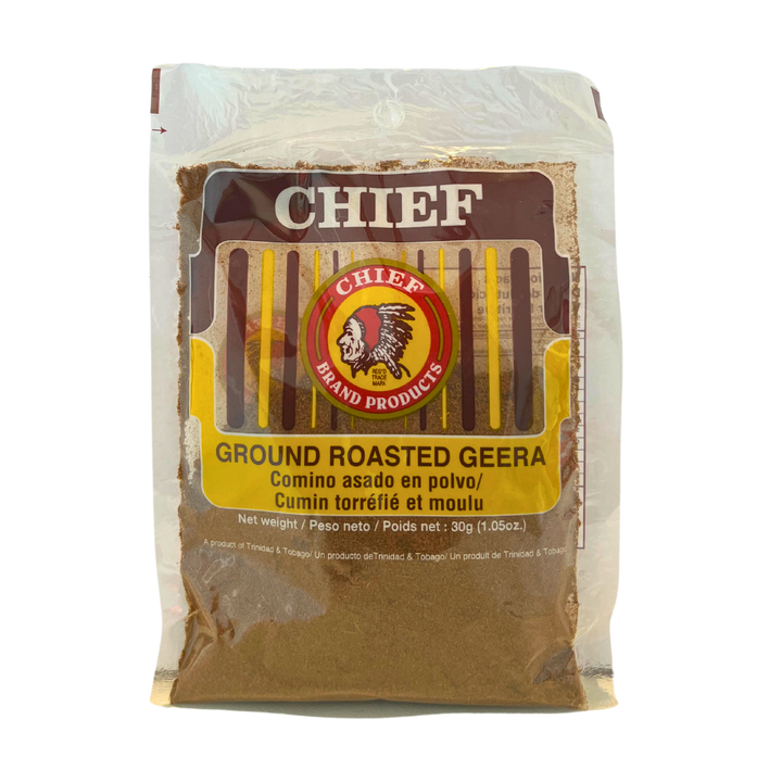 Experience the authentic flavors of the Caribbean with Chief's Ground Roasted Geera, a 30g jar of finely ground roasted cumin seeds. This essential spice, known locally as "geera," adds a robust and nutty flavor to a variety of dishes, making it a staple in Caribbean kitchens. Whether you're seasoning meats, flavoring rice dishes, or adding depth to sauces and chutneys, Chief's Ground Roasted Geera promises to bring a taste of the islands to your culinary creations.