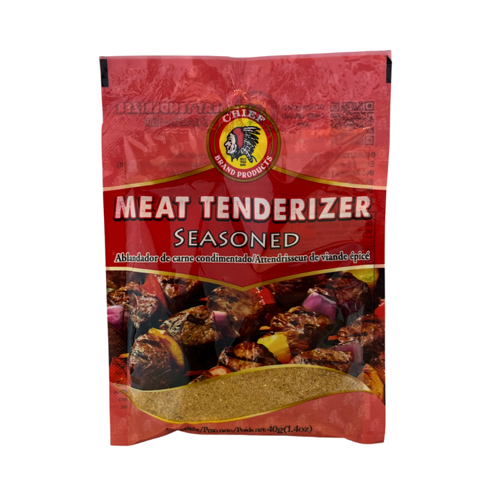 Experience the secret to perfectly tender and flavorful meats with Chief's Meat Tenderizer Seasoned. This 40g packet is specially crafted with a blend of spices and tenderizing agents to elevate your cooking to the next level. Whether you're grilling steaks, roasting chicken, or preparing pork chops, Chief's Meat Tenderizer Seasoned ensures each bite is juicy, tender, and bursting with delicious flavor.