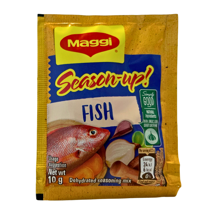 Bring the taste of the sea to your kitchen with Maggi's Flavour D'Pot Fish seasoning. This 10g packet is expertly blended to enhance the natural flavors of your fish dishes, making it perfect for everything from grilling and frying to baking and stewing. With its rich combination of herbs and spices, Maggi's Flavour D'Pot Fish ensures a delicious and aromatic meal every time.